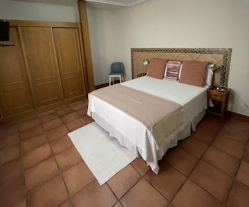 Nuestras 4 habitaciones matrimoniales son perfectas para ir con tu pareja, dos de ellas cuentas con una cama King size de 1,50cm y las dos restantes con una cama de 1,35cm. La capacidad es para 2 personas, aunque existe la posibilidad de añadir una cama supletoria. Todas disponen de televisión por cable, balcón, calefacción, conexión a internet. Los baños son provistos secador de pelo y amenites. Desayuno incluido.